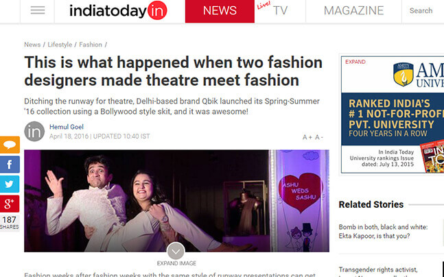 In a bid to introduce the first-of-its-kind concept, Qbik unveiled it's Spring Summer'16 Collection with a dramatic bang where FASHION meet THEATRE in their very own show window at their Shahpur Jat flagship store!