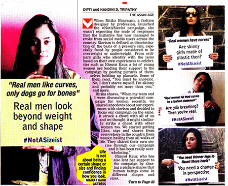 The Asian Age Newspaper covered the #NotASizeist Campaign Story in their print and digital editions